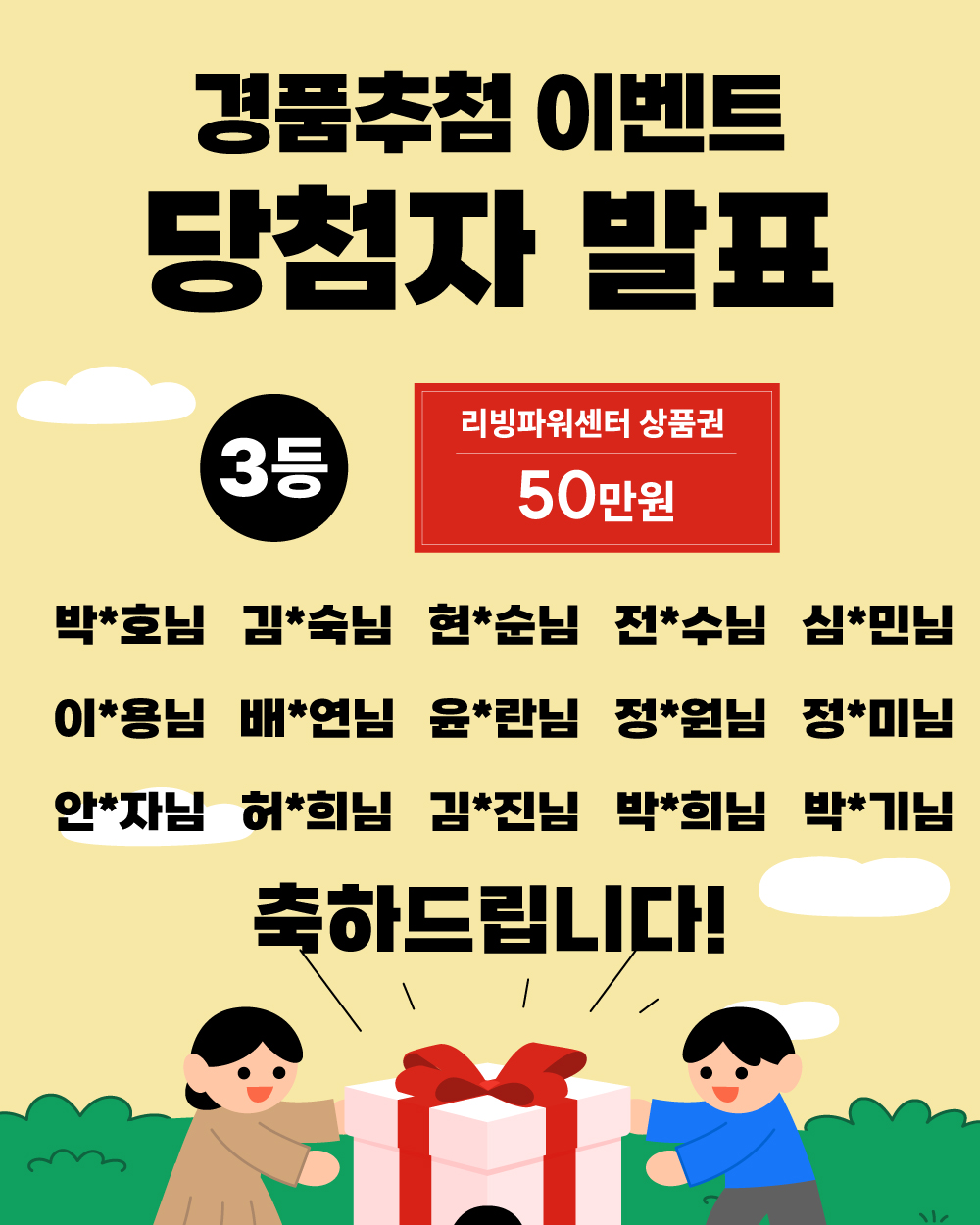 리빙파워센터 오픈 경품이벤트 당첨자안내